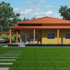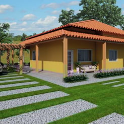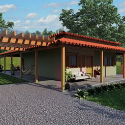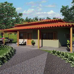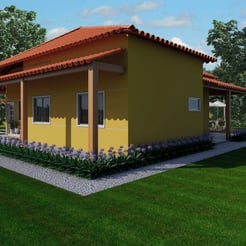 Resultado da volumetria de dois projetos arquitetônicos desenvolvidos para duas irmãs na zona rural.