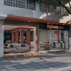 Projeto comercial revitalizando fachada de acordo com nova identidade visual.